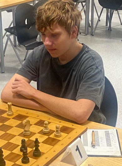 Lennard Schrubba trat mit den weißen Figuren gegen Wolfgang Ritter an. Im Mittelspiel gelang im eine geschickte Kombination und er konnte sich eine Qualität sowie einen Bauern sichern. Schwarz jedoch nutzte sein Momentum und holte zum Gegenangriff aus. Mit der nötigen Ruhe ließ weiß keine Einschläge zu und richtete sich gegen den schwarzen König. Nach etwas mehr als 30 Zügen konnte Lennard Schrubba den Sieg erlangen. Damit schließt er das Turnier mit 4.5 Punkten aus 5 Runden erfolgreich als Gesamtsieger ab.