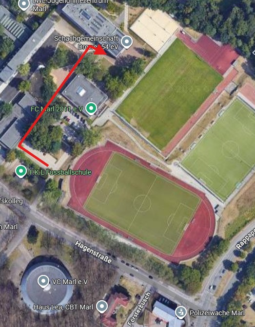 Parken können Sie auf dem Parkplatz an der Adresse Hagenstraße 15 von dort folgen Sie bitte dem Weg wie auf dem Lageplan Bild angegeben.